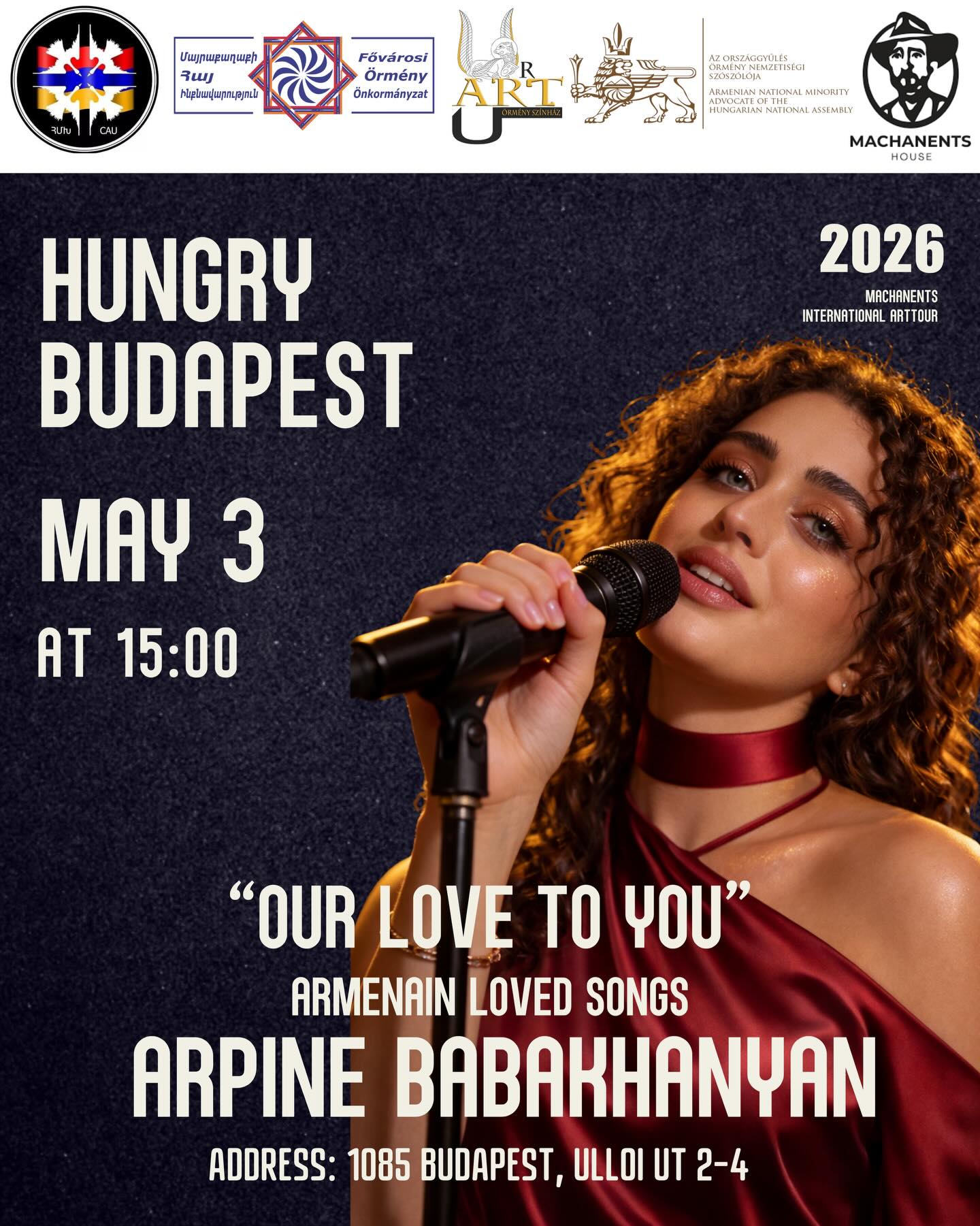Arpine Babakhanyan Solo Concert – Beloved Armenian Songs May 3 at 15:00 Location: 1085 Budapest, Ulloi ut 2-4