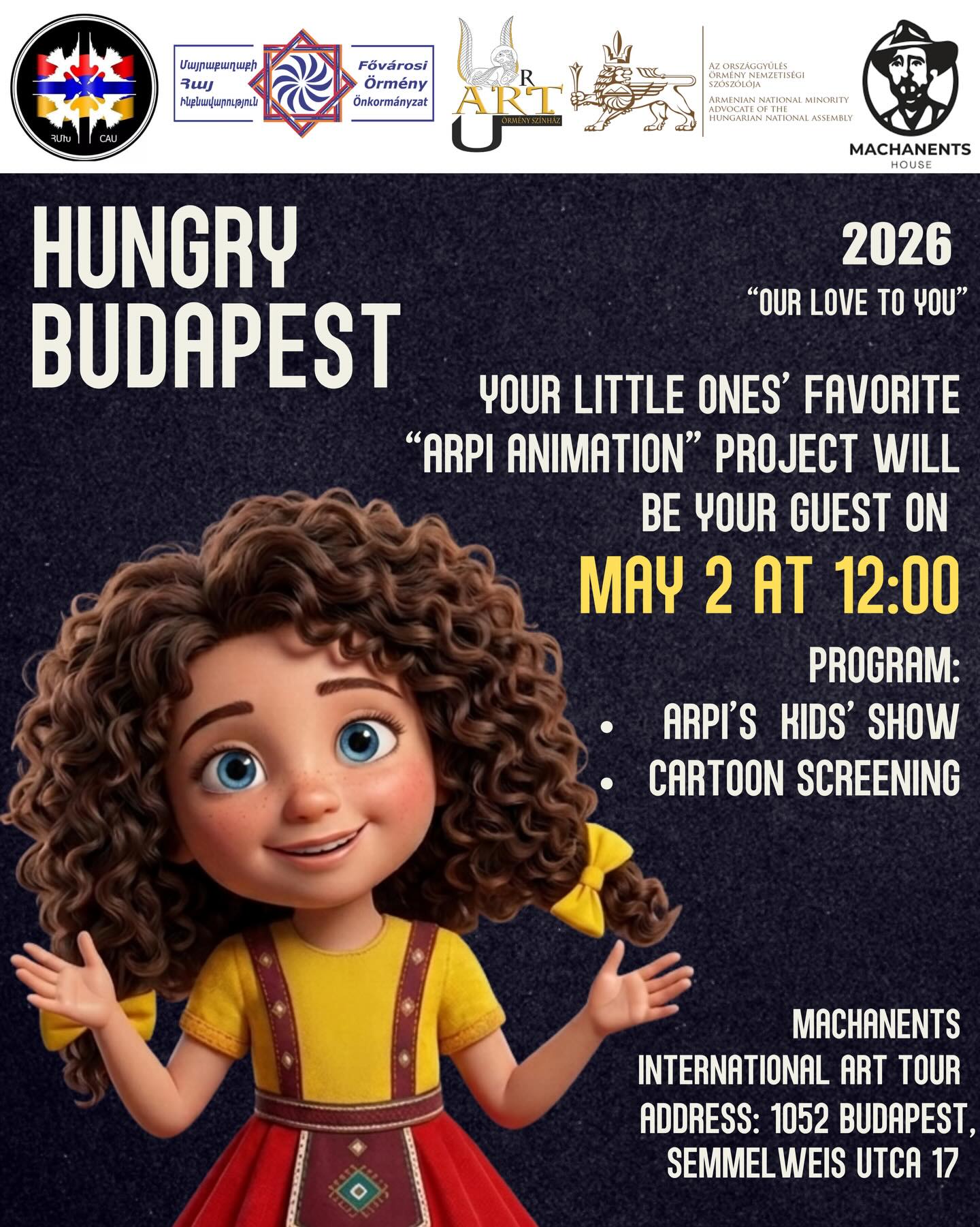 Детский концерт и показ мультфильмов «ARPI ANIMATION» 2 мая в 12:00 Адрес: 1052 Budapest, Semmelweis utca 17
